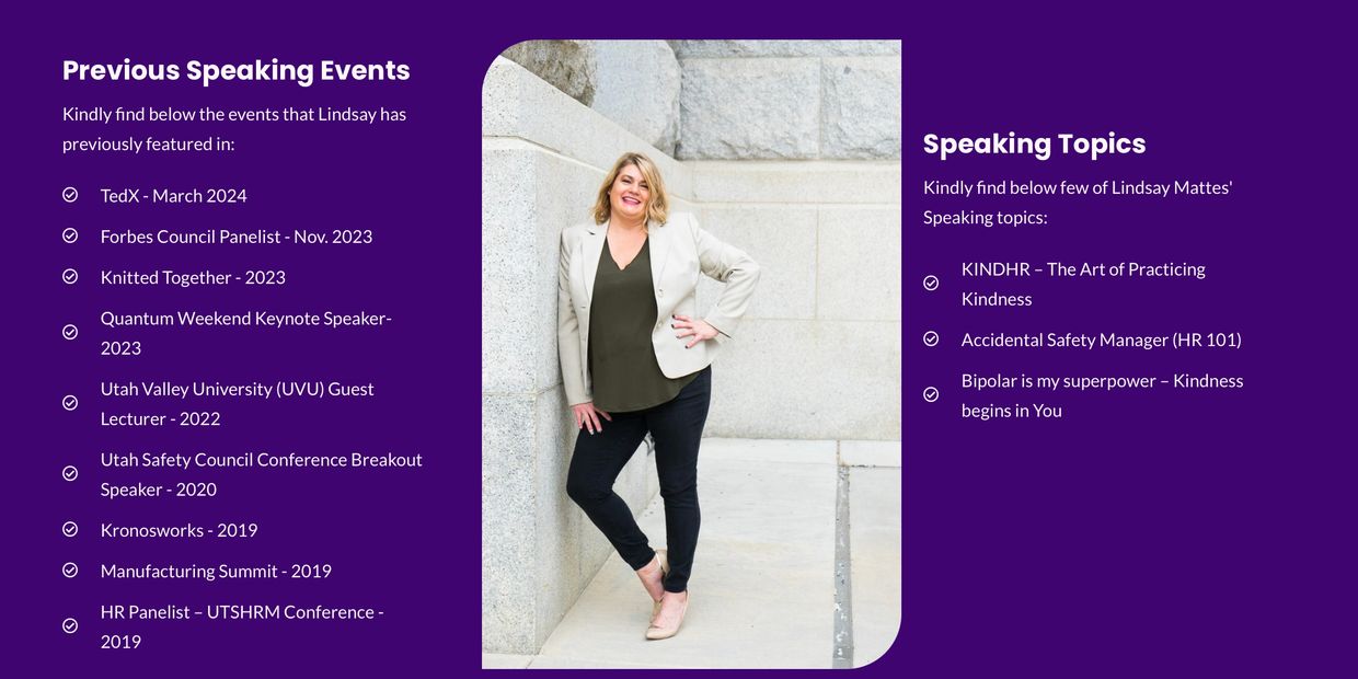 Lindsay Mattes is a seasoned Executive HR Strategist, Organizational Leadership Mentor, International Speaker, Author, and Kindness Coach. She collaborates with leaders to promote the transformative power of compassion, encapsulated in her guiding principle: “Don’t be a Dick . . . Be Kind!” Lindsay's extensive experience includes serving as the Board Vice President for Repertory Dance Theatre and holding prominent roles in SHRM. She has a bachelor's degree in Women’s Studies from the University of Utah and a master’s degree in organizational leadership from Gonzaga University, specializing in Servant Leadership. Recognized for her expertise, Lindsay has spoken at numerous conferences, including TedX, and is passionate about enhancing organizational culture and fostering kindness. Her new book, "Don't Be a D!cK," is an essential resource for HR professionals and managers.